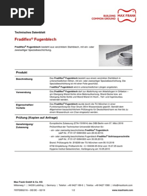 Filtern sie schnell und gezielt das max frank produktsortiment und erhalten sie neue ideenansätze für produktkombinationen oder produktalternativen mit unserem produktfinder. Scopri ricette, idee per la casa, consigli di stile e altre idee da provare. In stremaflex ® fugenabstellungen ist bereits ein beschichtetes fugenblech der marke fradiflex ® integriert. Das abstellen und abdichten der arbeitsfuge erledigen sie damit in nur einem arbeitsschritt. Diese produktkombination eignet sich besonders für die abdichtung von druckwasserbelasteten fugen in hochwertig genutzten bauwerken.